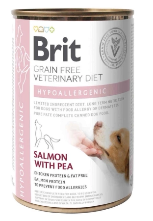 Brit Veterinary Diet Hypoallergenic to odpowiednio zbilansowana, dietetyczna karma mokra dedykowana dla psów z problemami dermatologicznymi i gastroenterologicznymi wywołanymi przez alergie i nietolerancje pokarmowe.