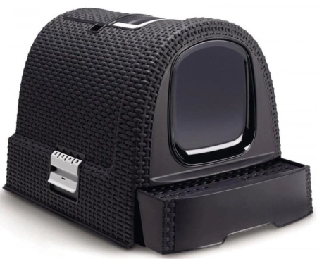 Firma Curver stworzyła toaletę idealną, która jest nie tylko estetyczna, ale przede wszystkim bardzo praktyczna. Została wykonana z przypominającego rattan materiału, który świetnie się prezentuje oraz bardzo łatwo czyści. Kuweta została wyposażona w wysuwaną szufladę oraz schowek na akcesoria (łopatka i mata czyszcząca łapki w zestawie). Posiada szczelne zatrzaski ograniczające wysypywanie się żwirku oraz filtr przeciwzapachowy, który podnosi komfort jej użytkowania, zaś wygodny uchwyt ułatwi jej przenoszenie.