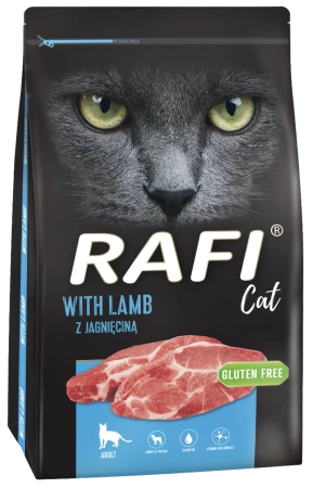 Sucha karma dla kota Rafi Cat z jagnięciną Pełnoporcjowa sucha karma dla dorosłych kotów Doskonale zbilansowana dieta to podstawa dobrego samopoczucia czworonogów.