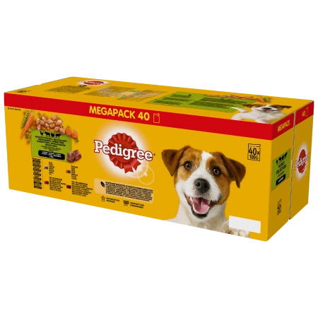 Pedigree Mokra Karma Dla Dorosłych Psów Saszetka Mix Smaków (Z Kurczakiem I Warzywami, Z Wołowiną I Warzywami, Z Indykiem I Marchewką, Z Wołowiną I Jagnięciną) 40x100g- Opis produktu